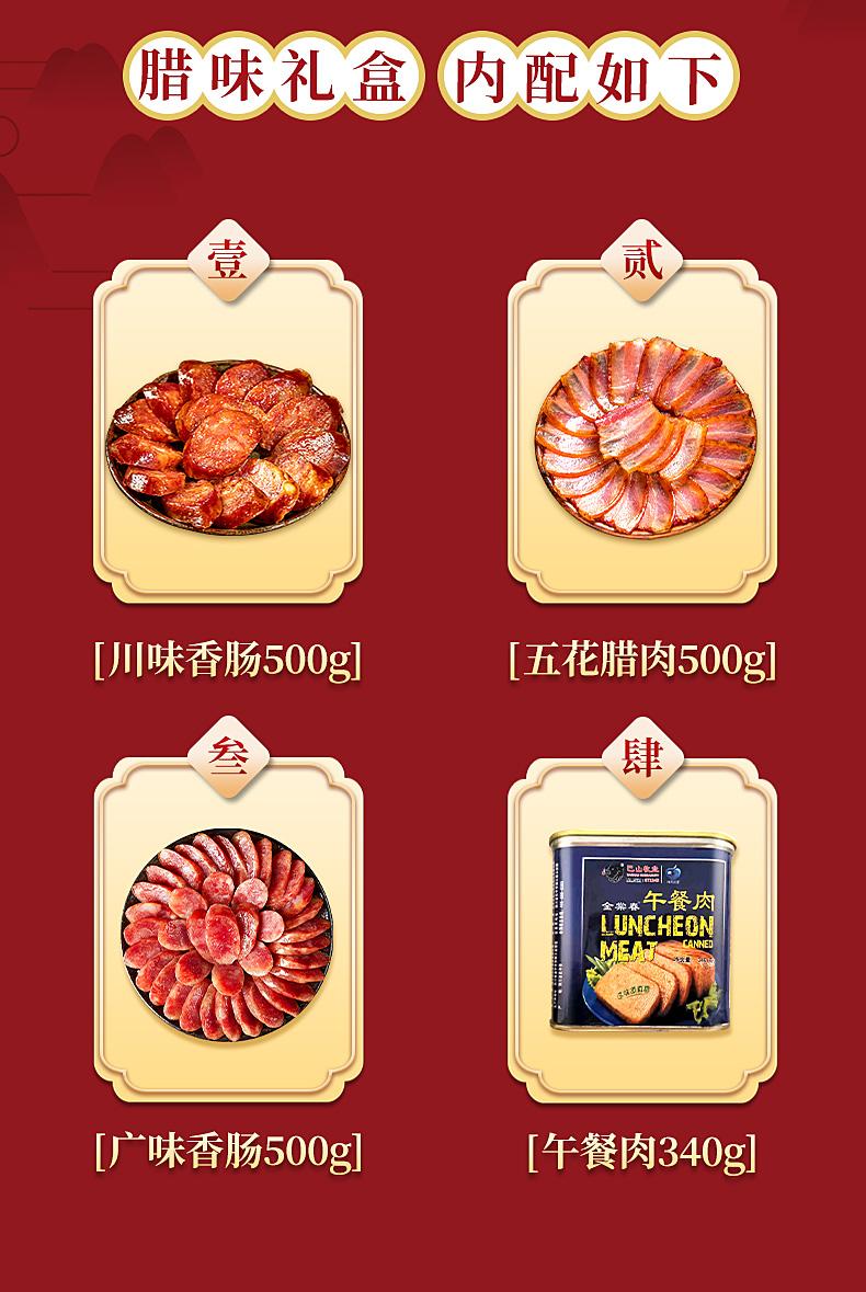 川味香腸500g 廣味香腸500g 五花臘肉500g 午餐肉340g