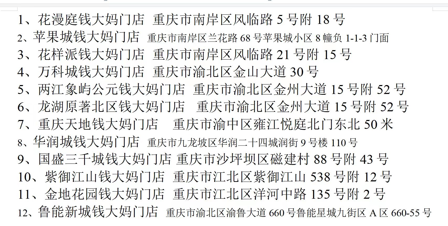 首次上店銷售的門店有12家,名單如下,歡迎各位重慶的朋友到店選購(gòu)。